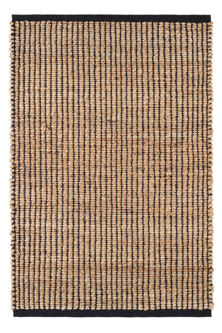 Simple weave of black cotton warp and slubby jute weft adds visual and tactile texture to this low profile flat woven rug. Ideal for living room, entryway, kitchen and other high traffic areas. Reversible for extended life and beauty.