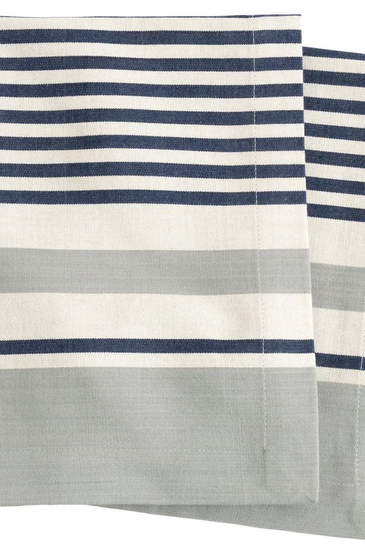 Show your stripes with our oversized, softly laundered, handwoven cotton napkins. Classic colors of Midnight, Grey, and White are inspired by our bestselling Gunner flatwoven cotton rug. Generously sized for total lap protection, they also double as tea towels, so consider buying extra sets to coordinate your kitchen and table. Sold as a set of four.