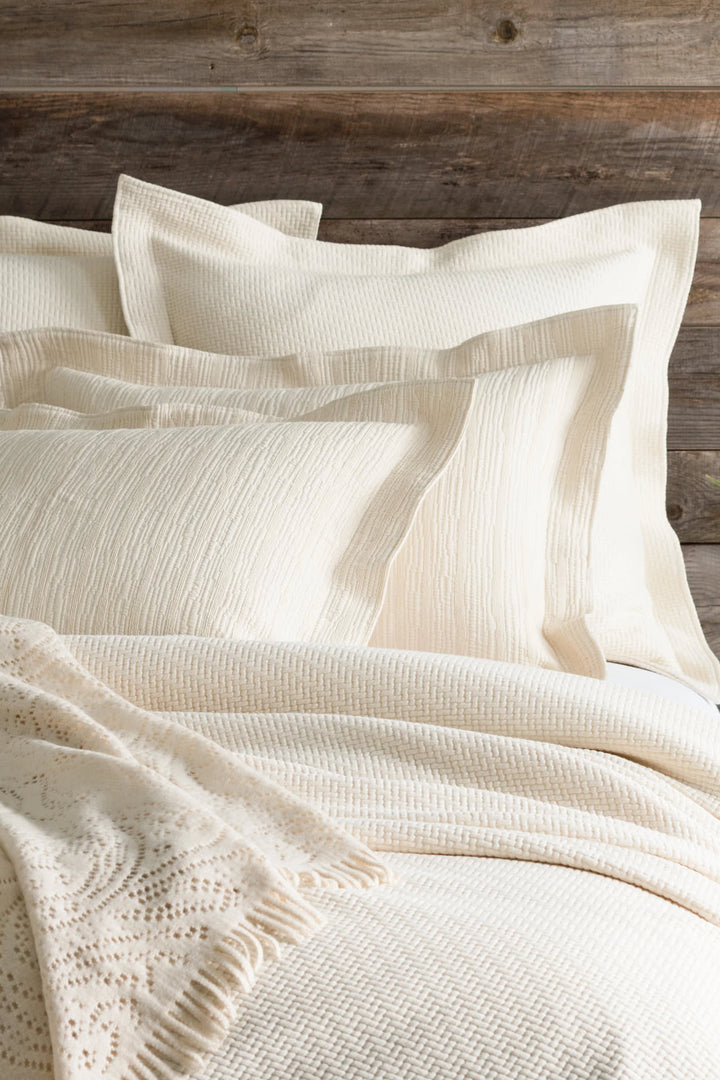 Goes-with-anything woven, textured cotton matelass� coverlet in a range of rich, saturated hues.