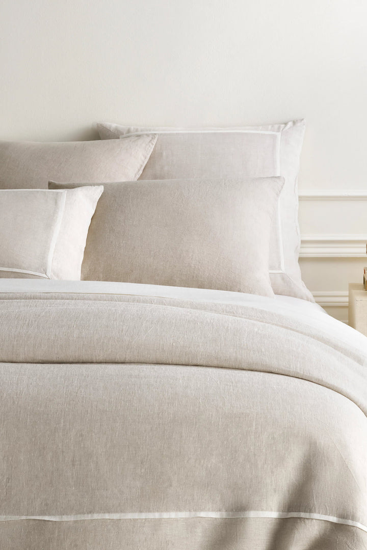 In a classic indigo and ivory combo, this linen chambray duvet cover, featuring a single pleat, is an easy, preppy piece with timeless appeal. Crafted to be an exact color match to our Hampton Ticking Linen Indigo duvet cover, shams, and decorative pillows.