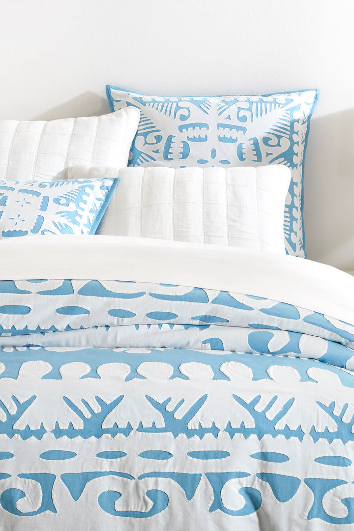 Part of our design collaboration with Kit Kemp. This one-of-a-kind sham boasts an exquisite handstitched cutwork design on 100% cotton. Solid on the reverse.