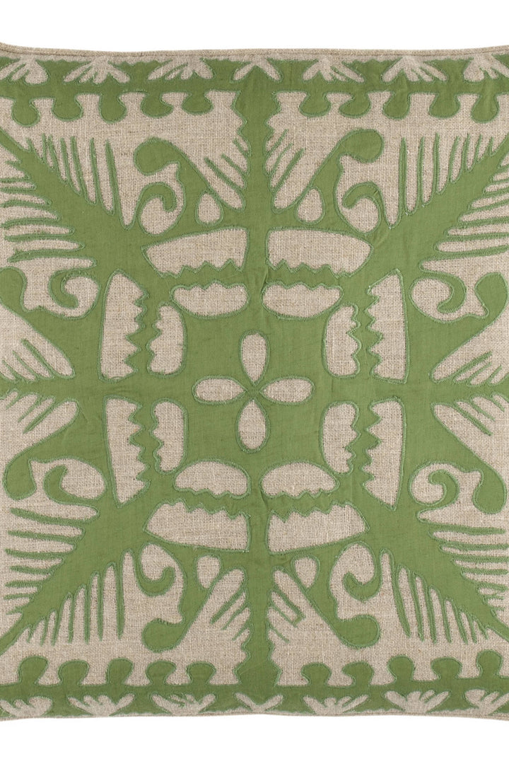 - Materials: Front & Back: 100% Linen; Applique: 51% Linen/49% Cotton