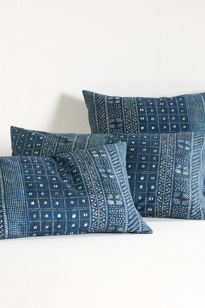 This eye-catching block print pattern was inspired by an antique textile our designers discovered at the famed Brimfield Antique Market in Massachusetts. Artful and eye-catching in an authentic indigo blue, it’s made from a softly textured cotton-linen blend and is single-sided with a solid navy reverse.
