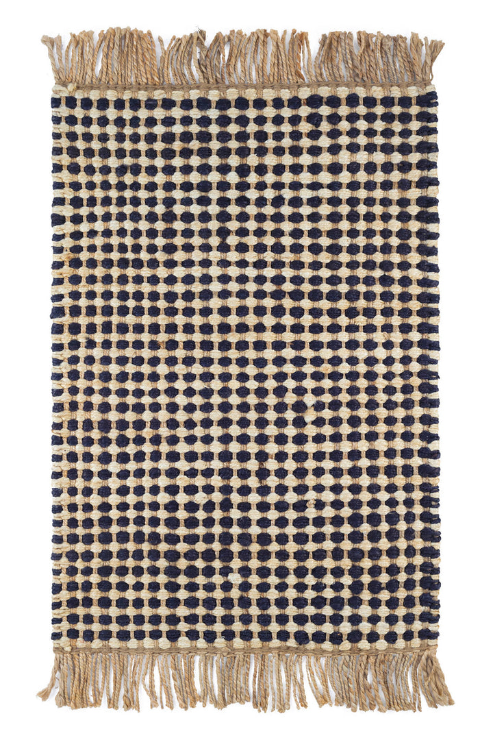 Multi-stranded flatweave rug has a natural warp and alternating black and ivory chunky weft for a textural check that reads like a dot. The natural silky slubby sheen of the jute is artfully presented with this simple, dramatic pattern. This simple flatwoven jute design offers beauty and appeal on a scale that makes it modern and timeless. Eco-friendly, ultra durable and great for any indoor room.