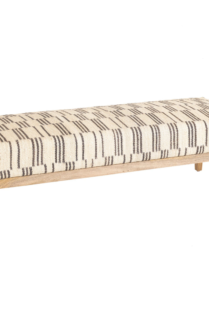 Smart and Scandi-inspired, this handy rug bench features a wooden base making it elevated and airy, but still incredibly soft for seating. In two handy sizes, this versatile piece can serve as an ottoman, coffee table, or extra dining seating. Richly upholstered in uniquely soft, sustainable jute with broken ladder stripes, promoting a relaxed sensibility with a modern flair. This product comes from our design collaboration with Marie Flanigan, an award-winning interior designer, to reflect her signature style of timeless elegance and innovative simplicity.