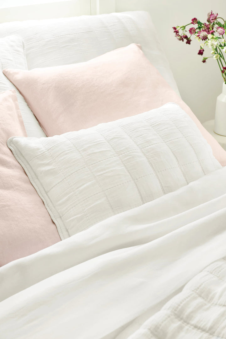 Cloud-like yet substantial, this beautiful cotton sham has a laundered, lived-in look and easygoing style. Matching coverlet available.