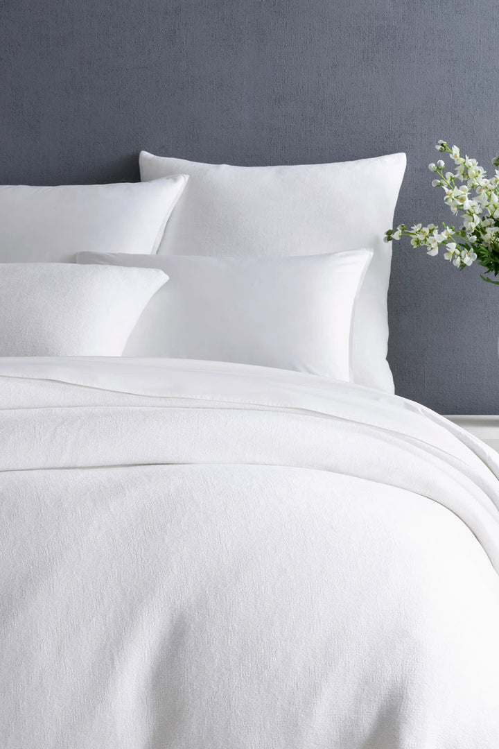 Build a bed that's both modern and irresistibly cozy with this textured cotton duvet cover. This bright white duvet can be layered with saturated hues for a sleek, streamlined look, while its soft, subtle texture creates a cuddle-worthy haven.<br><br> • 100% cotton.<br> • Stonewashed for softness.<br> • Knife edge.<br> • Hidden button closure.<br> • Made in Portugal.