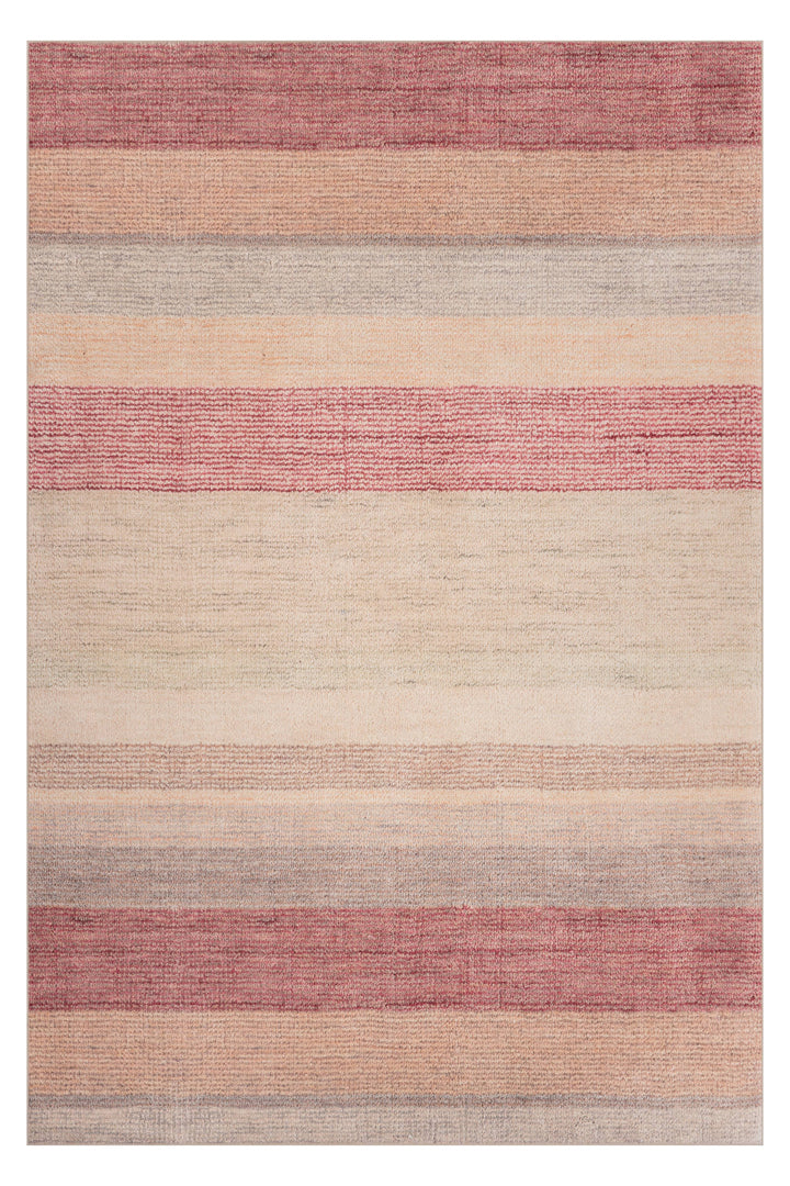 Softly striped and quietly modern, the Noa Modern Striped Washable Rug brings its warm, blended hues to life with a gentle, painterly elegance. Multicolor bands in soft shades of pink—ranging from rose to clay to blush—drift across a calm neutral base, creating a look that feels relaxed, modern, and beautifully understated. Crafted from durable synthetics, its flat pile offers a smooth, refined feel underfoot, resists everyday wear, and slips easily beneath the sweep of a door for seamless placement. Fully washable, Noa refreshes effortlessly after life’s little mishaps, preserving its warm, contemporary charm day after day.