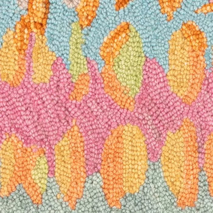 • Micro-hooked wool rugs crafted by artisans with small hooks create dense, durable, intricately detailed designs