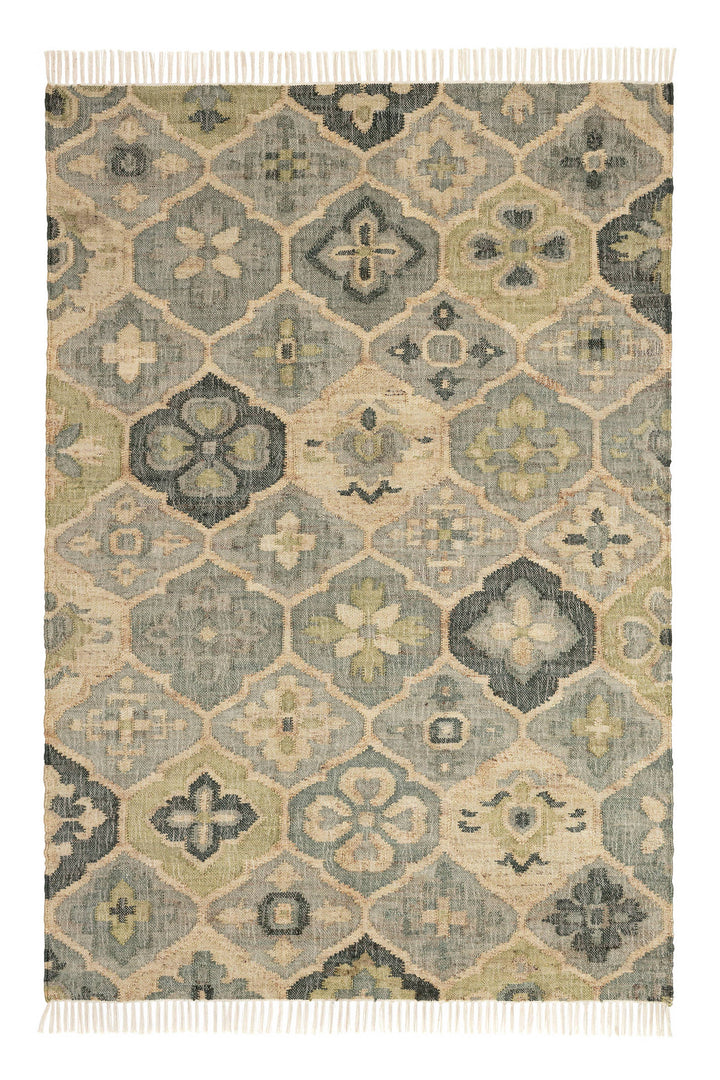 Timeless quatrefoil medallions in shades of sky, denim, natural and ivory, dhurrie woven from hardworking jute, with a touch of cotton for softness. Sustainable, biodegradable and renewable, jute adds orglamic character and rustic chic to any room.