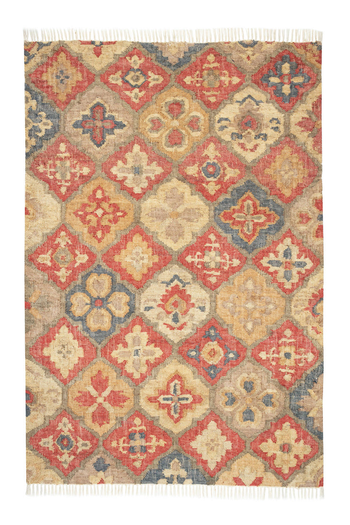 Timeless quatrefoil medallions in shades of sky, denim, natural and ivory, dhurrie woven from hardworking jute, with a touch of cotton for softness. Sustainable, biodegradable and renewable, jute adds orglamic character and rustic chic to any room.