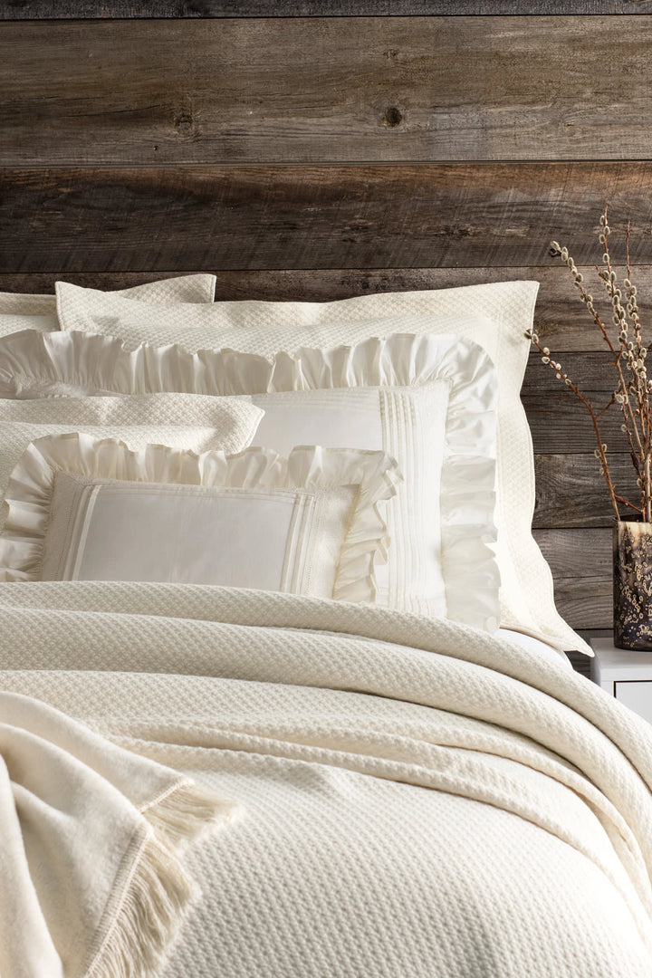 A latticework of tiny tone-on-tone diamonds spills over this matelass� coverlet, in the softest prewashed cotton.