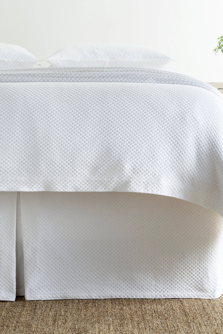 A latticework of tiny tone-on-tone diamonds spills over this matelassé bed skirt, in the softest prewashed cotton. Tailored skirt.