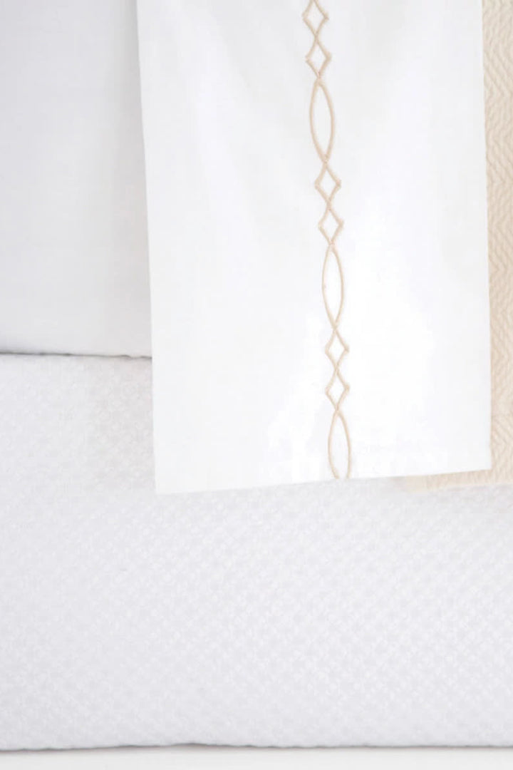 A latticework of tiny tone-on-tone diamonds spills over this matelass� box spring cover, in the softest prewashed cotton.