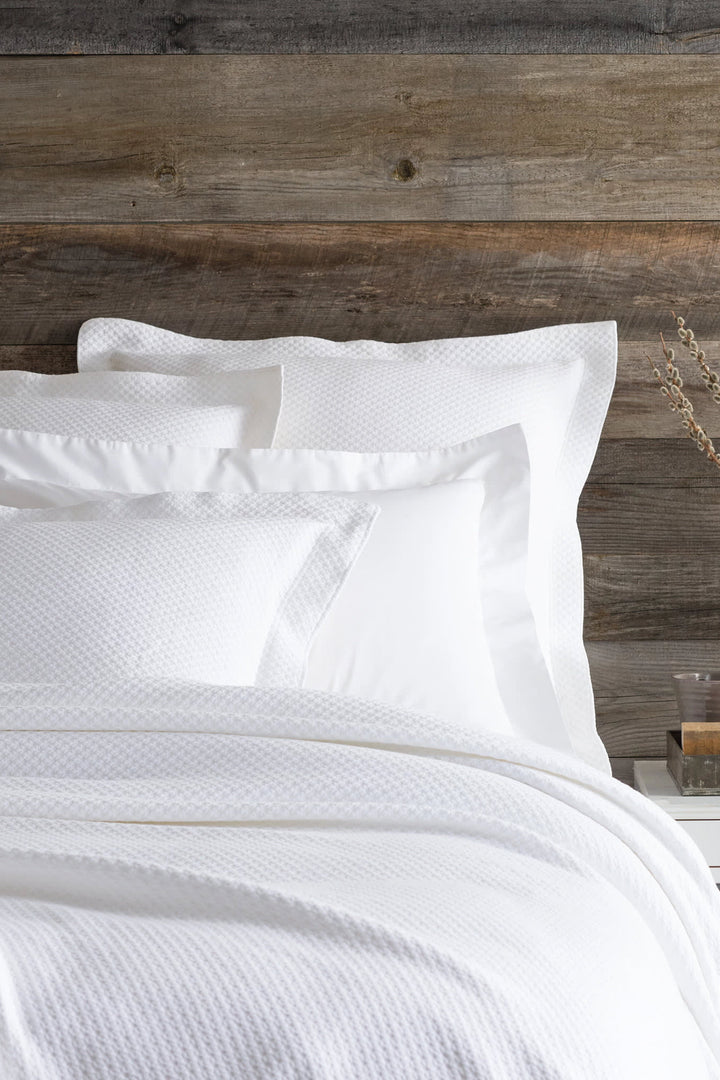 A latticework of tiny tone-on-tone diamonds spills over this matelass� coverlet, in the softest prewashed cotton.
