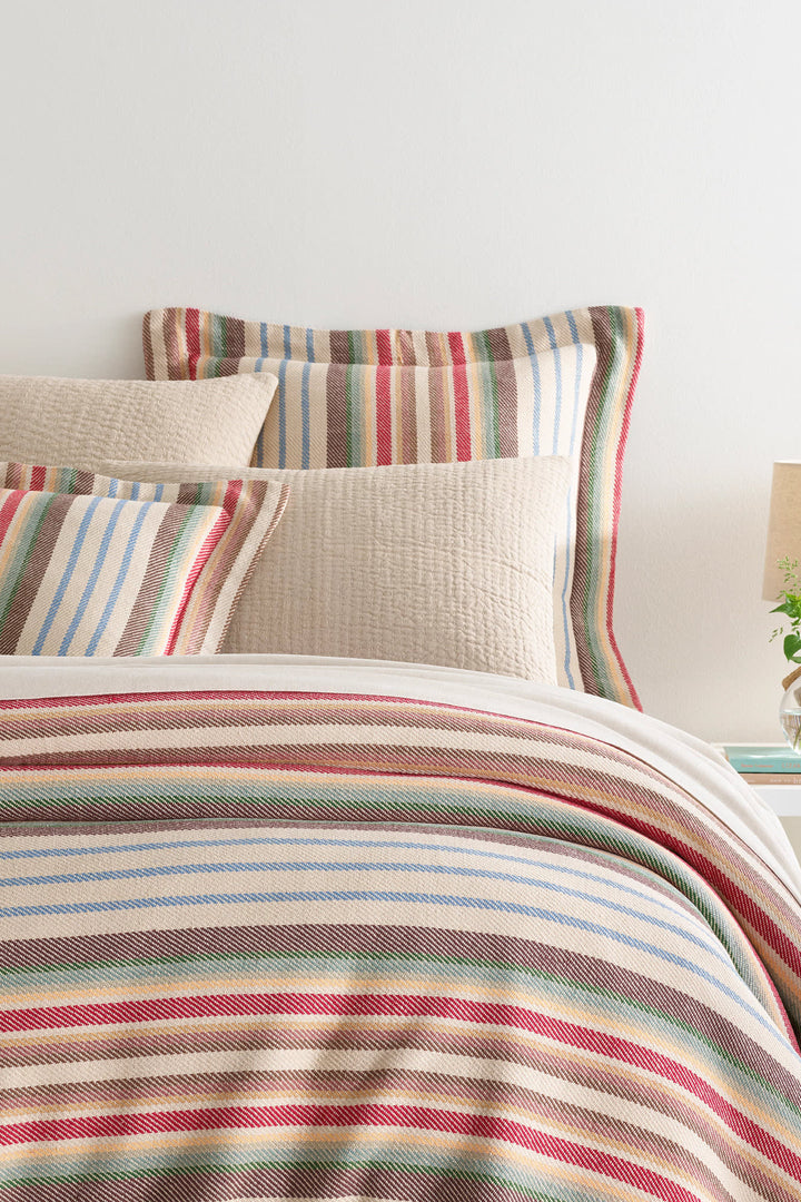 Texture, vivid color, and graphic horizontal stripes all on one durable, yarn-dyed woven cotton blanket.