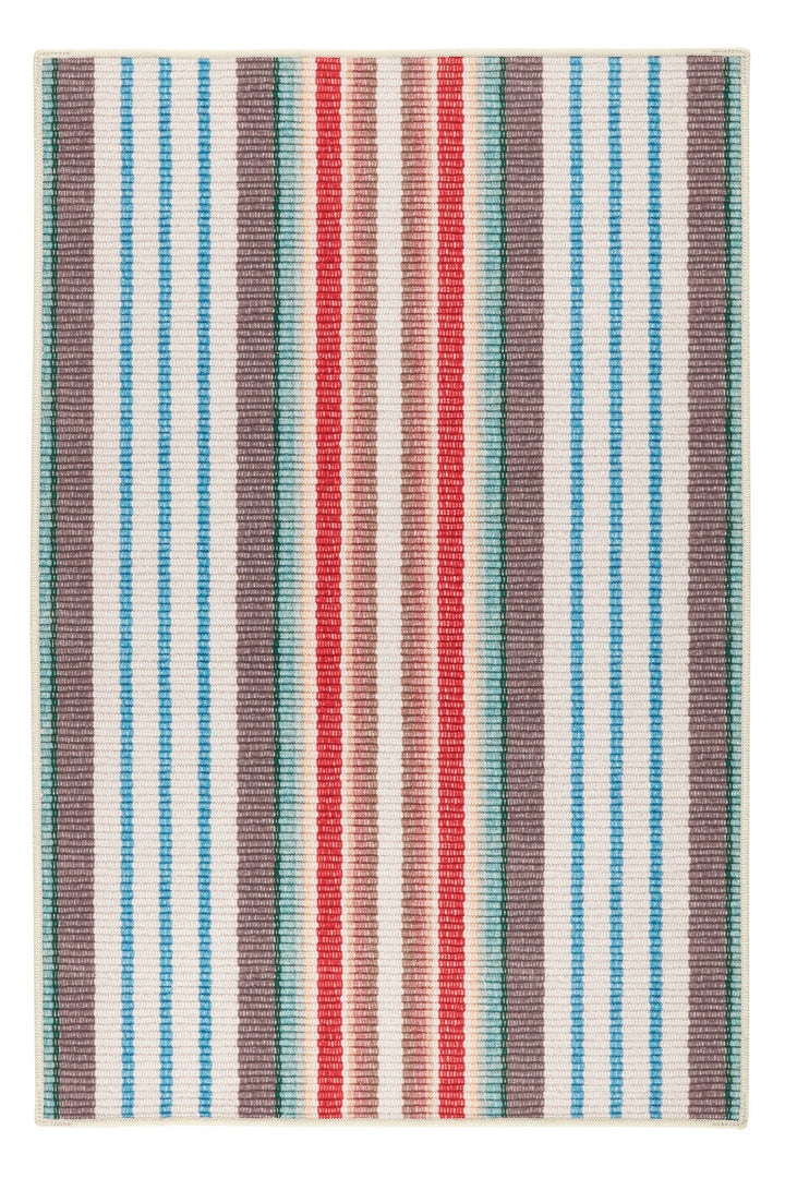 Part of our best-in-class collection of design-focused, machine-washable rugs. Even cowgirls get the blues (and red and browns and whites). With its bold repeating stripes and versatile colors, this superior quality, machine washable rug is at home on the range, or in any room you want to place it. Ideally suited for high-traffic areas like playrooms, kitchens, and entryways, it lies flat and remains soft underfoot with no shedding or fuzzing, even after multiple washes.