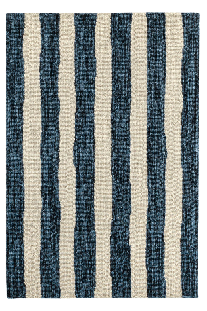 Silas Stripe Hand Micro Hooked Wool Rug | Navy