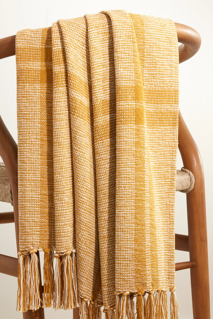 Our Stevie Indigo Throw is made of soft, 100% cotton to add lightweight yet cozy warmth to a sofa, chair, or bed. With its handsome tattersall check, finished off with a knotted fringe, it will impart effortless style and comfort season after season.