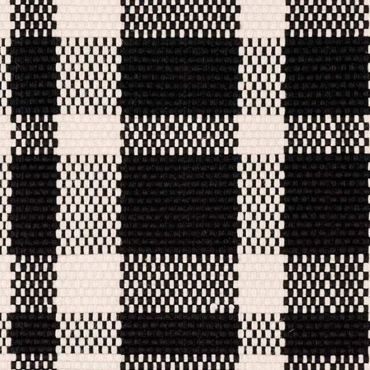 <p>Add a touch of classic style to your high-traffic spaces with this lightweight, washable, and durable indoor/outdoor rug in a timeless yet modern black and ivory plaid.</p>