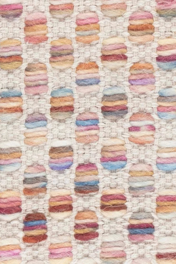 <p>Functional design meets simple beauty and masses of texture in this tightly woven, low profile wool rug. Silky heathered wool roving in pretty floral colorations on a cream base creates a pavement-mosaic of colorful lozenges that is soft, durable and timeless. A simple way to add a gentle dose of feminine charm to your home.</p>
