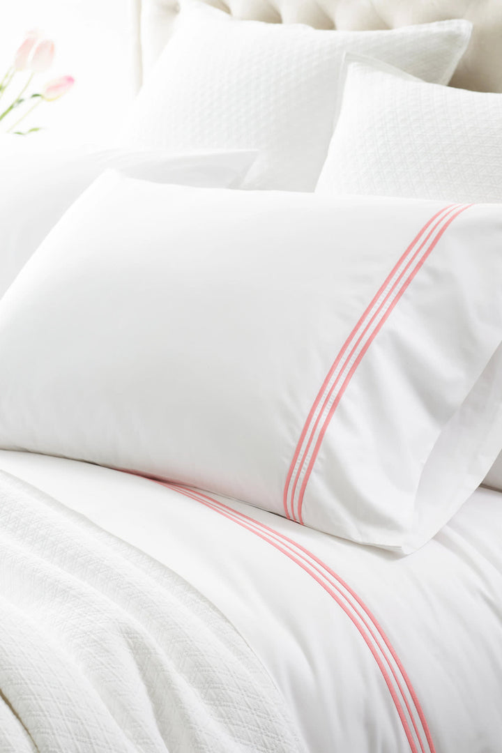 A simple, three-lined pattern adds a touch of refinement to this classic white, 400 thread-count cotton flat sheet.