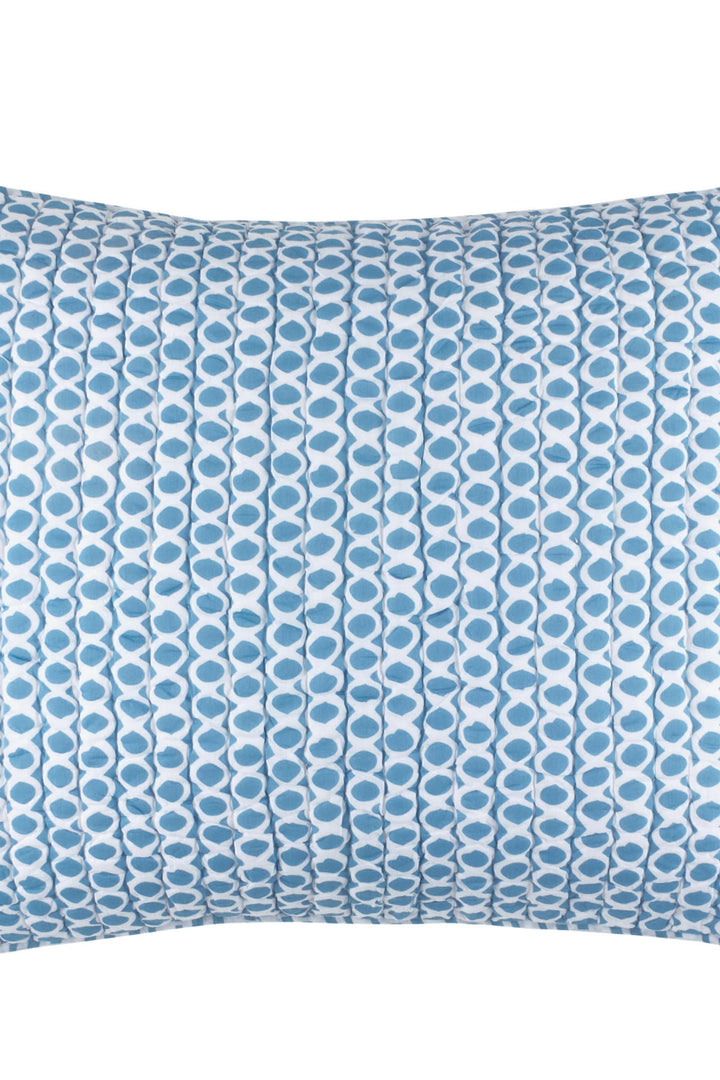 The pairing possibilities are endless with this reversible cotton sham, featuring two modern geometric prints in a classic French blue. Mix and match with our French blue C3 coordinates, tailored white sheets, or other brights like fuchsia and green. <br> <br> � 100% cotton. <br> � Straight edge. <br> � Coordinating stripe on back side and piping. <br> � Envelope back closure with ties.