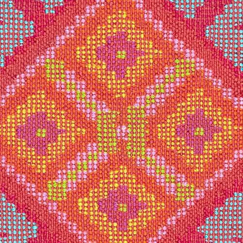 <p>This traditional Kilim weave was borrowed from an antique swatch and interpreted in performance yarns in shades of orange, rose, turquoise, lime, tomato, and ochre. Stain- and weather-resistant , it was sustainably made from recycled water bottles using fair labor practices. Washable and perfect for high-traffic use in entryways, covered porches, and kitchens.</p>