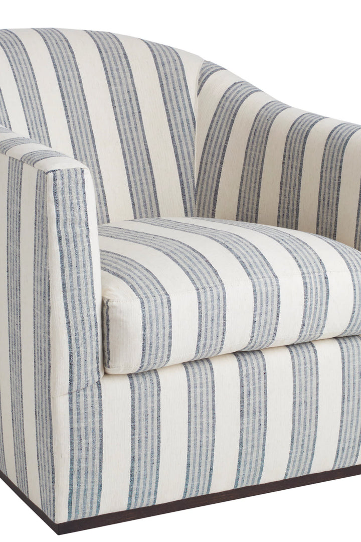 Luxuriate in a chic chair with an important extra. Our Thunderbird Swivel Chair turns so you can rotate to join the conversation, or change your view. The classic shape works in traditional or modern rooms. Cloud 9 cushions provide the ultimate in comfort. Tobacco finish on maple trim. Upholstered in your choice of designer fabrics. Exclusively from Annie Selke.