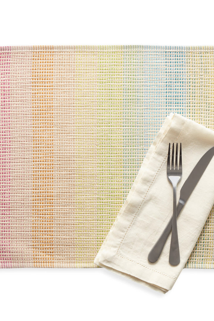 Inspired by one of our bestselling cotton rugs, these Watercolor Horizon Placemats are your ticket to effortless table style, whether you’re hosting a dinner party or just making Tuesday night feel special. Reversible and woven from cotton, their rainbow-inspired pattern serves up chic versatility. Pair them with our Watercolor Horizon Napkins for a coordinated look.