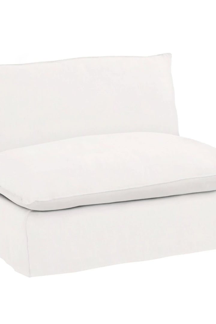The relaxed silhouette of this modular armless chair works well in just about any style of decor. As a stand-alone or a component of a sectional, it offers exceptional versatility and the ability to grow with your needs. Kiln dried hardwood framework is the foundation for outstanding support. Generous down and feather padding envelops the eco-foam core of the cushions for a soft and nestlike feel. The crisp tailored slipcover and skirt offers customizable style and practicality.