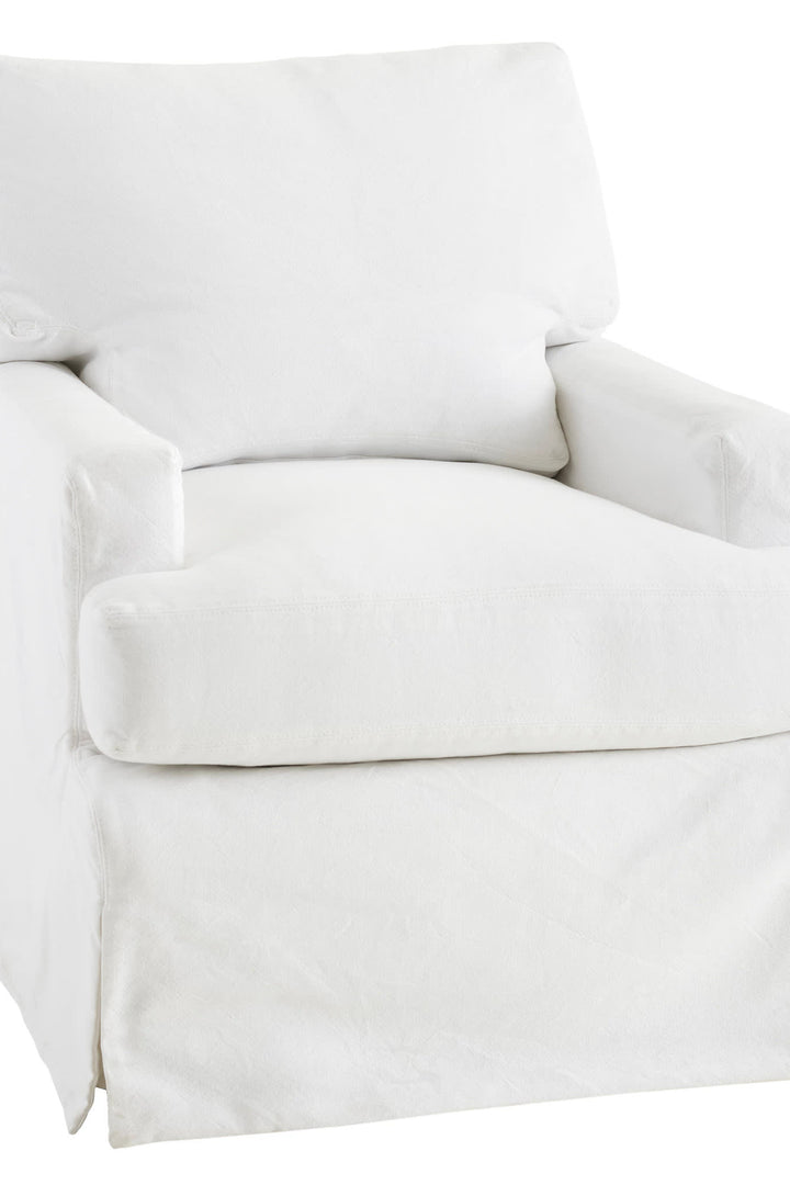 Comfortable, built to last, and uncompromisingly stylish, this custom slipcovered armchair is a classically built living room staple. The Cloud 9 cushions and durable hardware frame will withstand family game night, movie marathons, and those rare, quiet moments, with equal resilience. Customize it by choosing from an array of custom upholstery from Annie Selke.