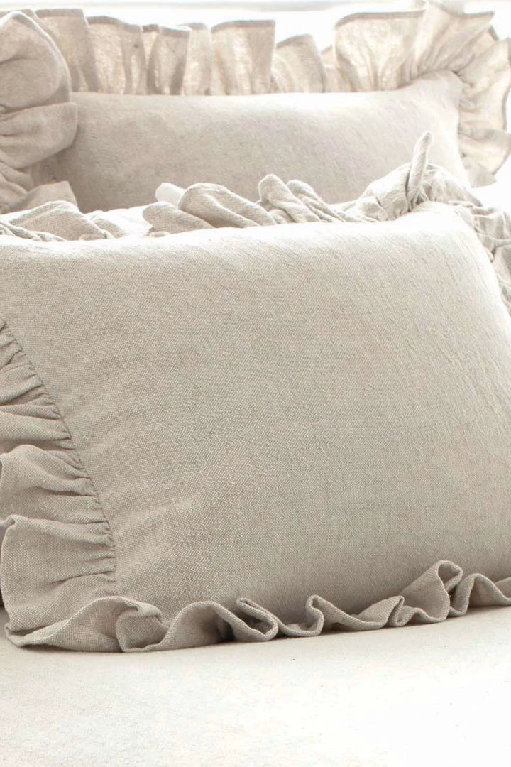 An all-new cotton/linen take on one of our best-selling products. Sham has 4-inch ruffle, tie-back closure.