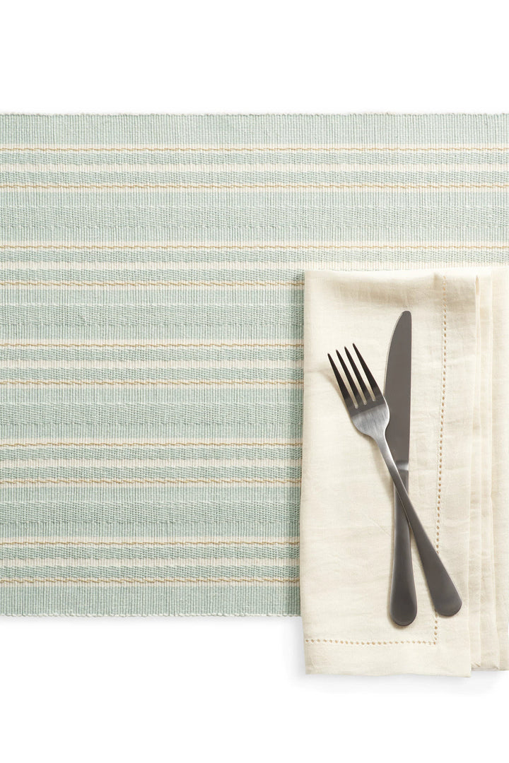 Named for the stunning icy blue and ochre stripes, our Winter Stripe Placemats are a lovely addition to your table in any season. Designed with an intricate, cotton twill weave, they are equally at home in formal and casual settings. Pair with our Winter Stripe Napkins for a perfectly pulled-together tabletop.